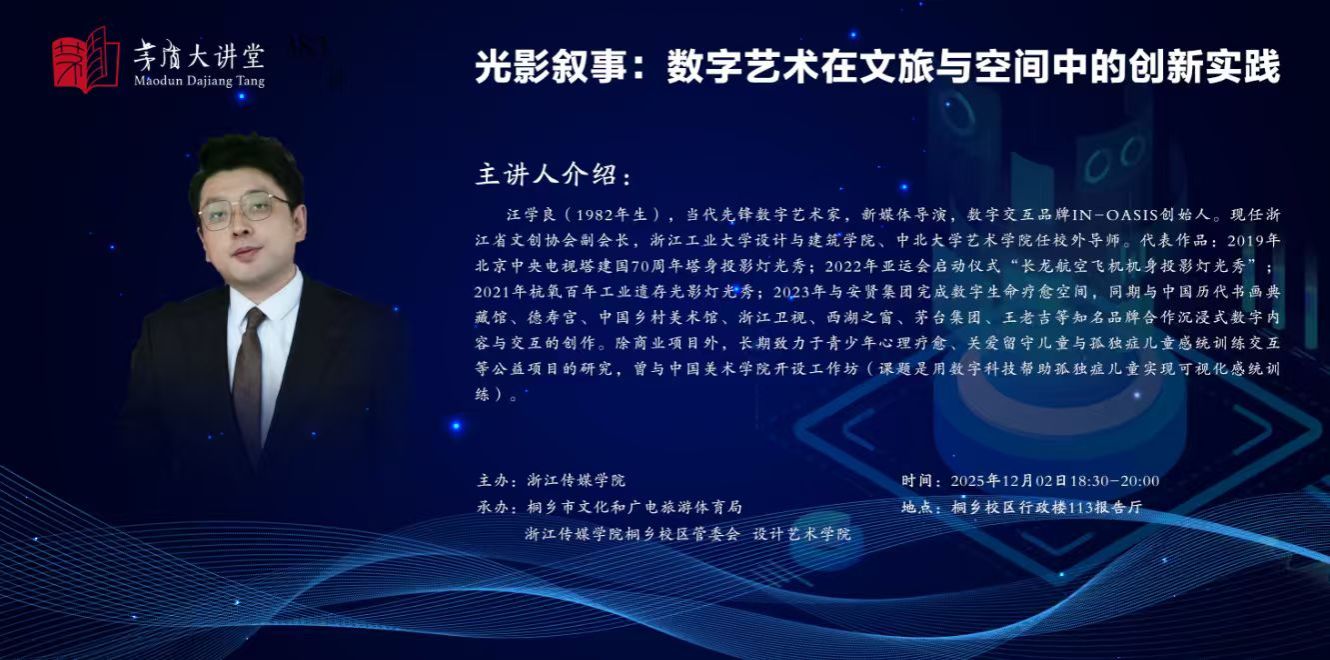 讲座预告 梧桐论艺│汪学良:光影叙事——数字艺术在文旅与空间中的创新实践