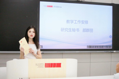 ● 党委副书记、纪委书记崔舒鹏、德育导师金贝儿分别开展安全与德育教育,从校园安全、网络防护到学术道德、社会公德,构建“思想+行为”双重防护网;研究生秘书颜群丽详解教学安排与培养方案,围绕课程设置、科研要求、毕业标准等关键节点拆解规划路径,帮助新生“从入学即明确‘学什么、怎么学、如何成’”。
